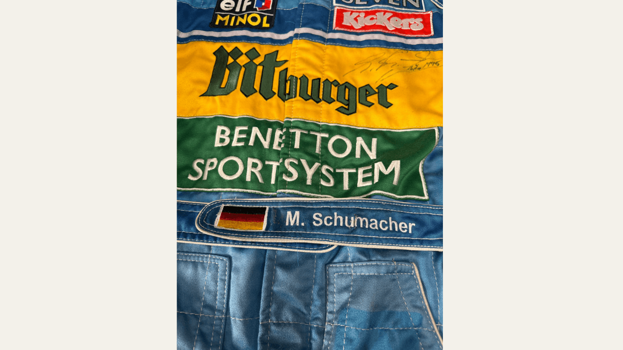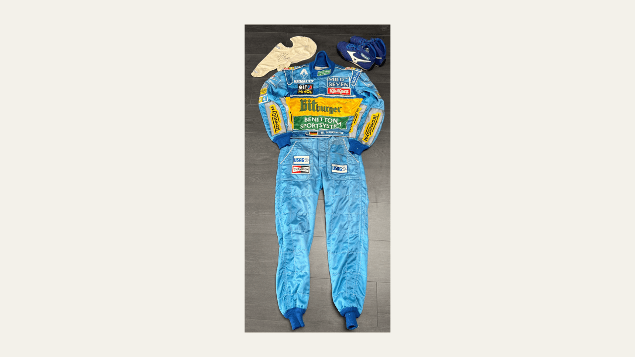 - Sammlerstück: Der komplette Rennanzug von Schumacher aus dem Meisterschaftsjahr ist echt begehrt, mit weniger als 5 Verkaufsdatenpunkten und einer starken Wiederverkaufsgeschichte.