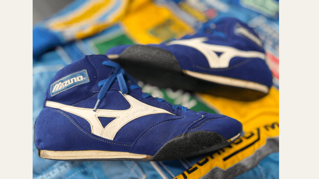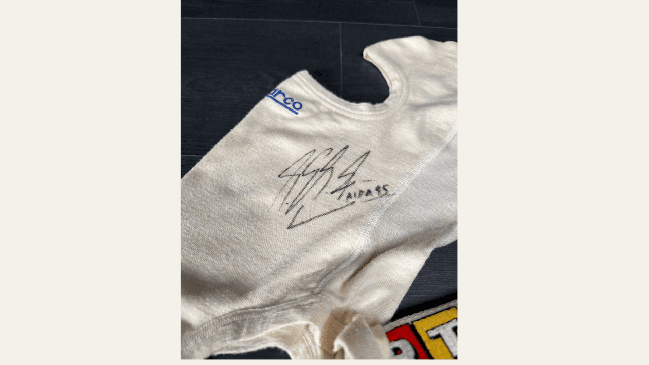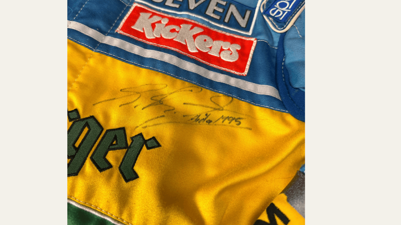 Diese Stücke in den Händen zu halten, bedeutet, sich mit der Präzision, Intensität und dem Geist einer wahren Rennsportikone in ihrer Blütezeit zu verbinden. Der Geruch der Rennstrecke, das Adrenalin des Sieges und die Disziplin eines Champions sind in diesem Set vereint. Jeder Stich, jeder Abrieb und jedes Detail zeugt still von dem unermüdlichen Streben nach Größe, das Schumachers Saison 1995 geprägt hat.