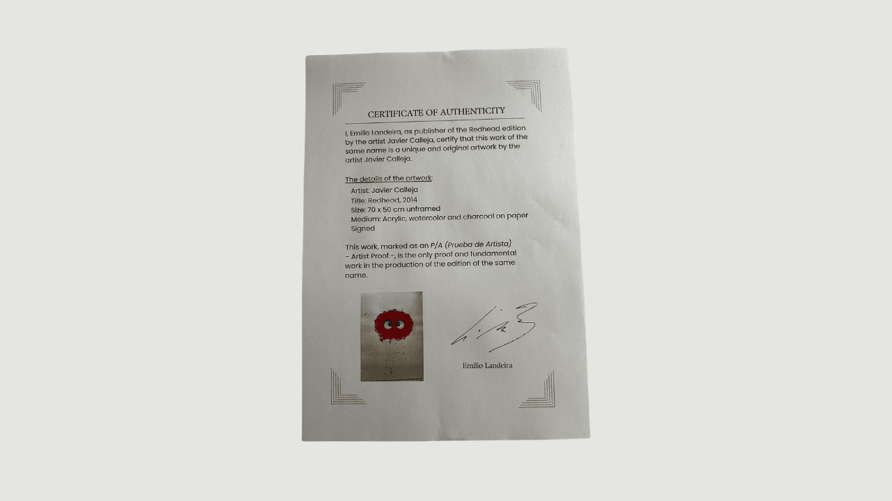 Redhead von Javier Calleja stellt eine seltene Gelegenheit dar, in einen der überzeugendsten aufstrebenden Blue-Chip-Künstler der zeitgenössischen Kunst zu investieren. Callejas charakteristische Ästhetik mit übergrossen, emotionalen Charakteren mit kindlicher Unschuld und ironischem Text hat aussergewöhnliche globale Anerkennung erreicht, insbesondere in Asien, wo die Nachfrage das Angebot konstant übersteigt. Seine Werke übertreffen regelmässig die Auktionsschätzungen bei Christie's und Sotheby's, wobei sein Auktionsrekord sich £947,000.0 nähert, was auf tiefe Sammlerliquidität und einen reifenden, investierbaren Markt hinweist.