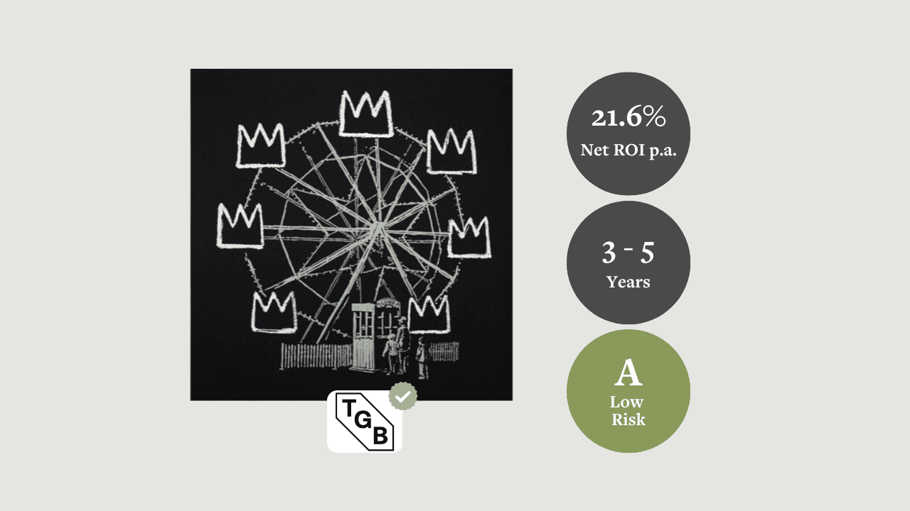 - 3–5 Jahre: So aufgebaut, dass man von Erholungsphasen und der anhaltenden weltweiten Nachfrage nach Banksys konzeptionell stärksten Werken profitieren kann.