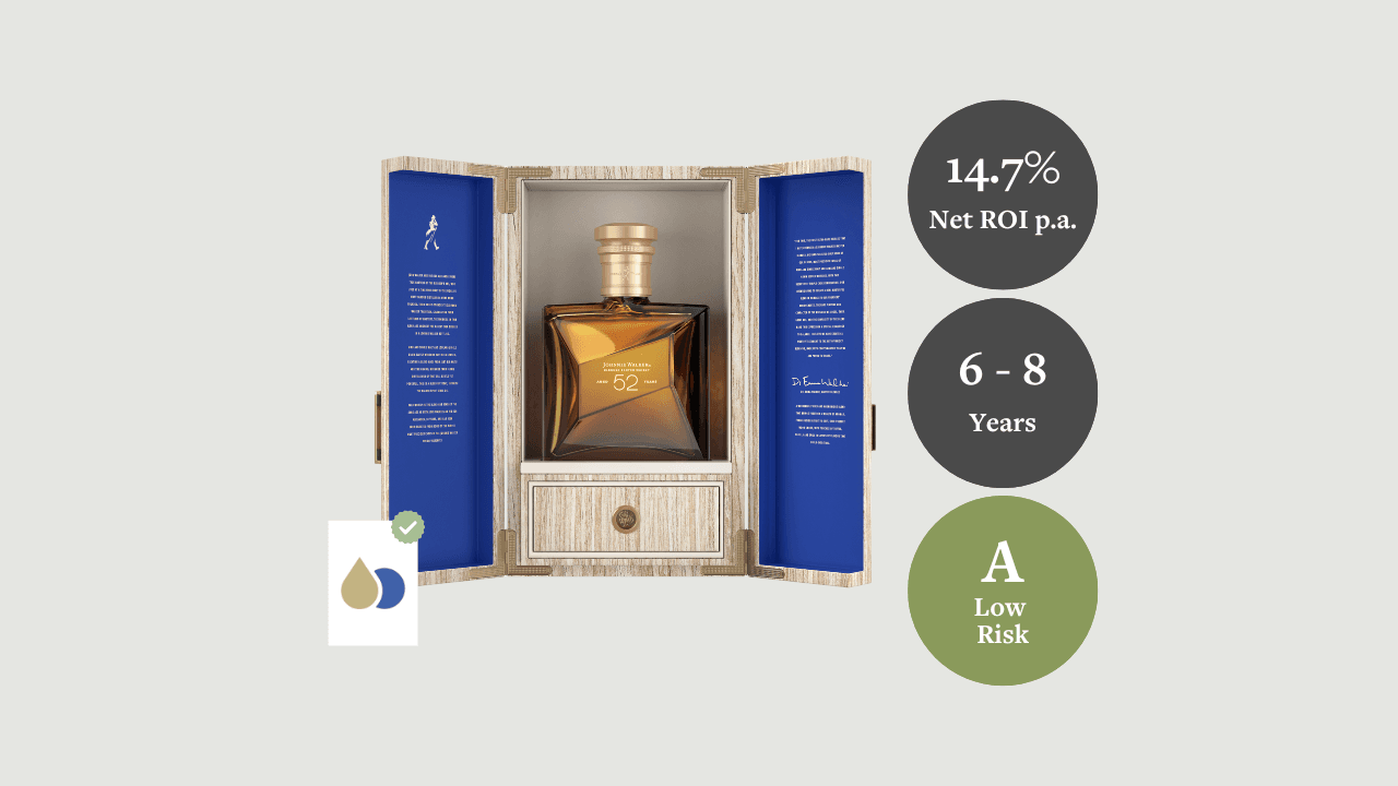 Dieser Johnnie Walker 52 Year Old vereint extremes Alter, Inhalte aus stillgelegten Brennereien und eine unvergleichliche globale Markenstärke. Mit validierten Preisen, geringer Volatilität und starkem Schutz vor Kursverlusten bietet er eine seltene Gelegenheit, in einen ultra-gereiften Flaggschiff-Whisky zu investieren, der innerhalb einer Blue-Chip-Sammlerkategorie auf eine stetige langfristige Wertsteigerung ausgerichtet ist.