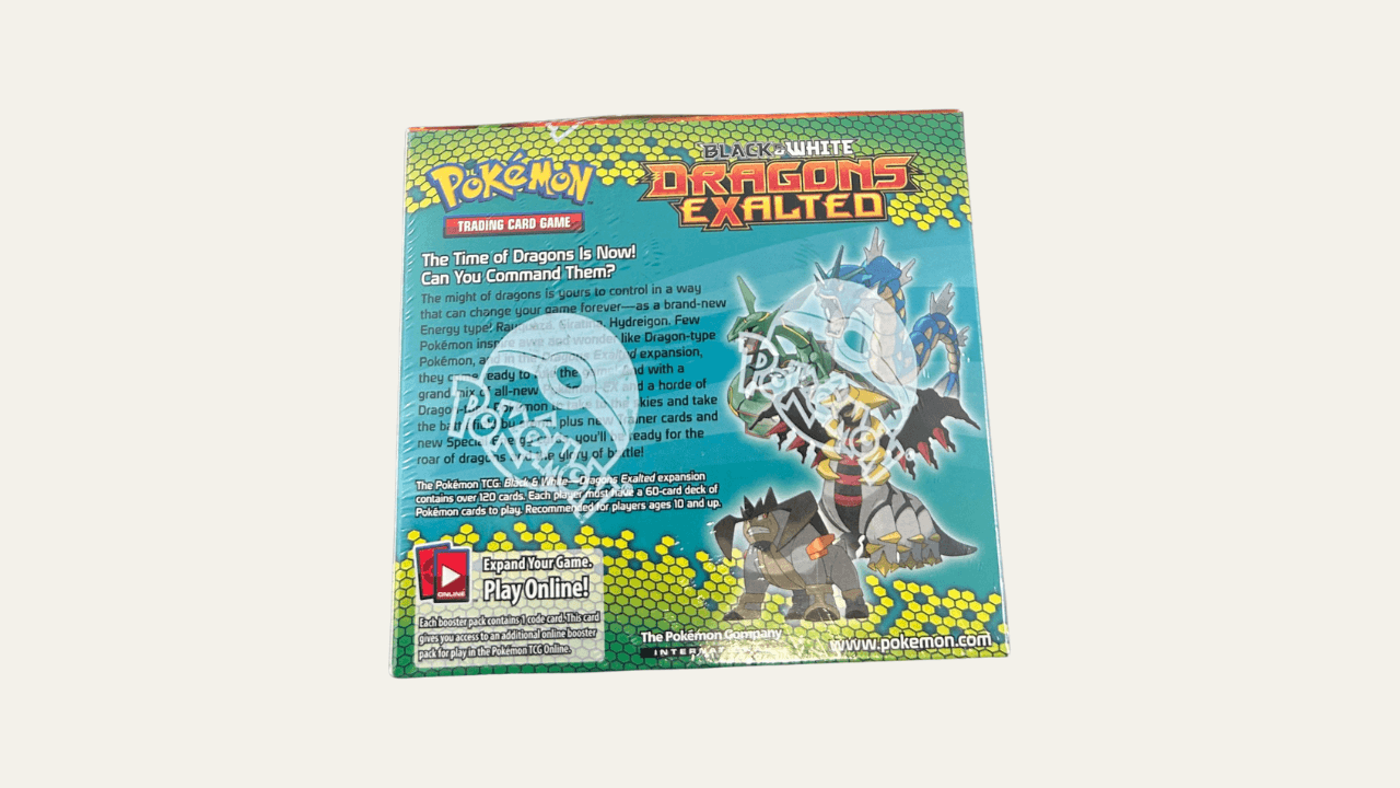 Der Aufstieg der Drachen-Ära 🐉: Dragons Exalted fängt den Moment ein, in dem Pokémon die Karten vom Typ Drache wieder einführte und damit eines der denkwürdigsten Themen der Schwarz & Weiss-Ära schuf. Das Set verbindet Nostalgie, Seltenheit und ikonische Illustrationen, sodass jede versiegelte Box wie ein erhaltenes Stück Pokémon-Geschichte wirkt. Für Sammler, die das Vermächtnis der Drachen lieben, ist diese Box ein Schatz aus einem entscheidenden Moment in der Entwicklung des TCG.