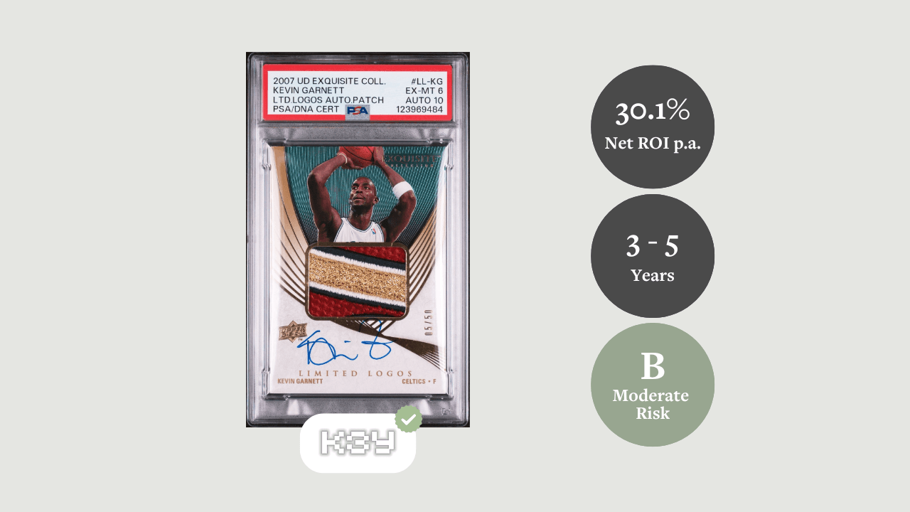 - 3â5 Jahre Zeithorizont: Ausgerichtet auf den langfristigen Markenwert von Garnett und das potenzielle Wachstum der Sammlernachfrage im Zusammenhang mit dem Erbe der Celtics und der historischen Bedeutung von Exquisite.
