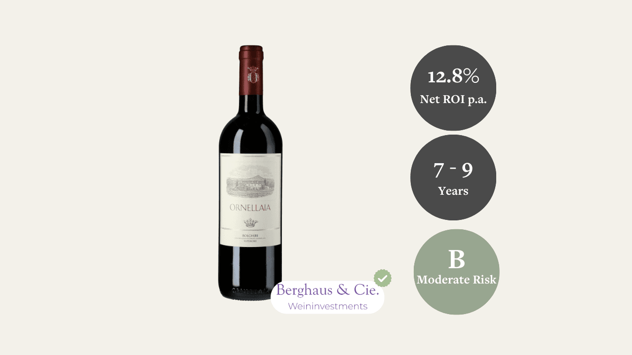 Einstiegsvorteil: Ornellaia 2023 ist eine super Gelegenheit, um in einen erstklassigen Wein mit hoher Sammlernachfrage und langfristigem Wertsteigerungspotenzial zu investieren, der mit einem Einstiegsrabatt von 12,6 % zu haben ist.
