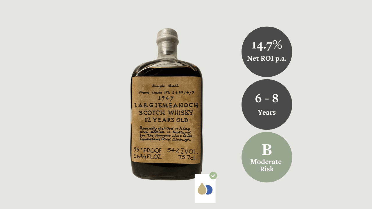 Heritage scarcity advantage: Largiemeanoch 1967 offers investors access to a disappearing pool of 1960s Highland whisky with an entry discount of 19.7%, where steadily shrinking supply and growing collector appreciation support a long-term revaluation.