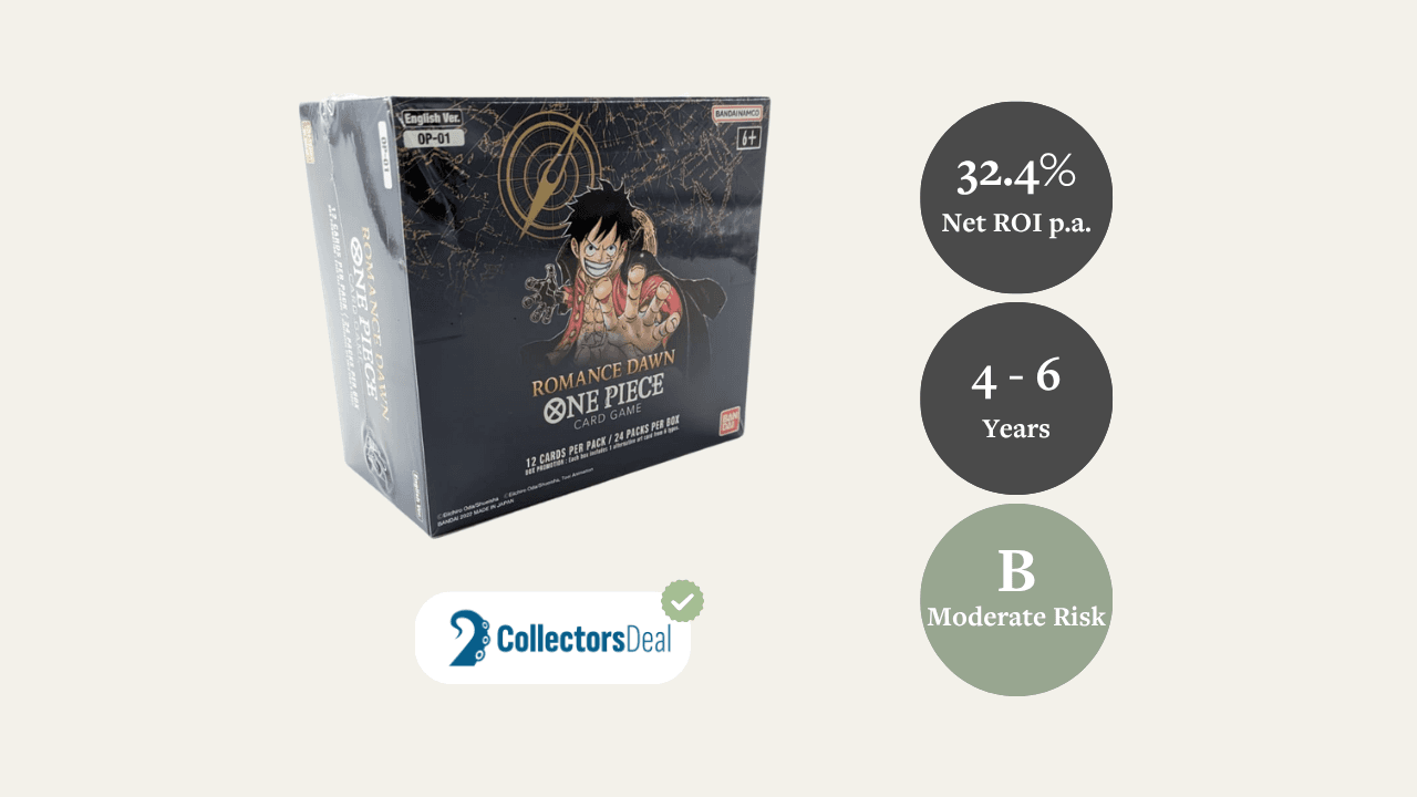 - 44.3% Net ROI p.a. (Ambitious): Reflects a stronger upside scenario supported by the unique first-wave status, global One Piece brand strength, and sustained collector interest.