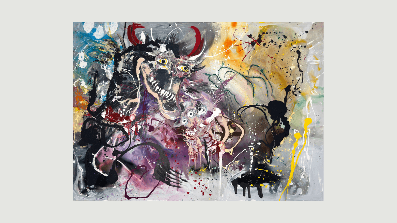 Collectors are drawn to this work because it embodies Thomas Dillonâs artistic language at its most complete and uncompromising. Executed at monumental scale and created as a unique piece, the painting reflects Dillonâs distinctive approach: mining figures and beasts from abstract fields through an intuitive, almost trance-like process. The resulting imagery feels raw, primal, and deeply expressiveâqualities that resonate strongly with collectors seeking authenticity rather than decorative appeal.