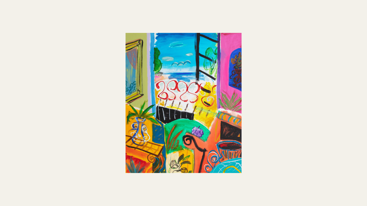 Watt's paintings blend structured form with raw emotion, producing works that are both architectonic and deeply human. Her figures and interiors are stylized yet spontaneous, imbued with rhythm and joy. Her artistic vocabulary draws from a rich lineage: he patterned surfaces of Gustav Klimt, the crisp stylization of Alex Katz, the flat yet expressive depth of Japanese woodblock prints, the sensuality of Gauguin's Tahitian women, and the Mediterranean light of David Hockney and Matisse. Her art is timeless, playful, and full of vitality. Watt favours acrylic paint, which allows for fast and spontaneous gestures. Transparent washes precede bold primary colours to create depth and vibrancy. Multiple motifs, all drawn from memory or imagination, are scattered throughout her work: highly stylized furniture; a picture within a picture; a torso â fragmented parts that, on their own, don't necessarily make sense, carefully placed to create a balanced whole.