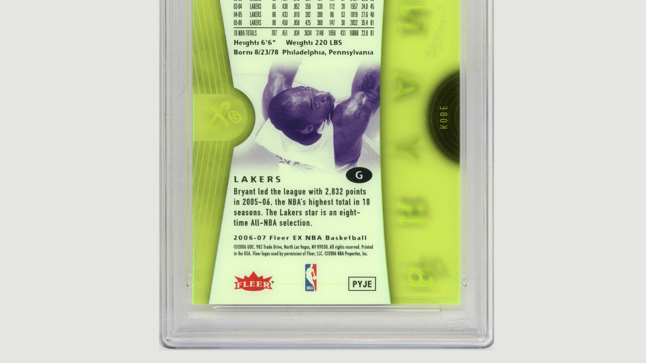 Taken together — scarcity, historical context, brand significance, condition quality, and collector recognition — this card represents an important and authentic Kobe Bryant asset within the high-end card market.