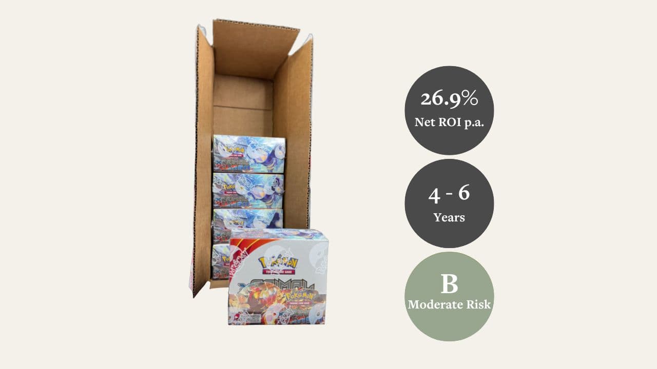 The Primal Clash sealed case combines category scarcity, strong price momentum and an attractive entry point. With a robust risk-return profile, high liquidity and sustained collector demand, this case stands out as a compelling opportunity within the mid-vintage Pokémon sealed segment over a 4-6 year horizon.