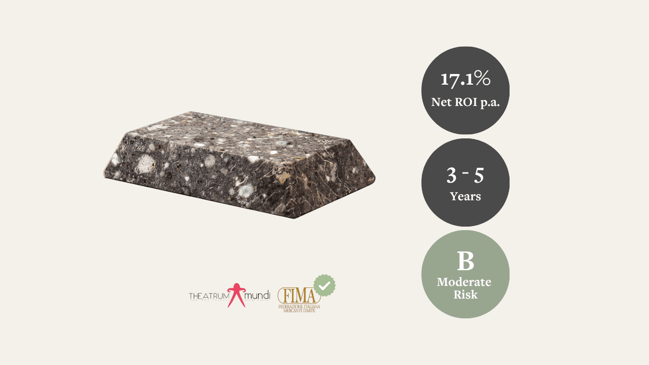 - 22.8% Net ROI p.a. (Optimistic): Reflects a stronger upside scenario supported by rarity, collector appeal, and thin supply for high-quality lunar meteorite end cuts.