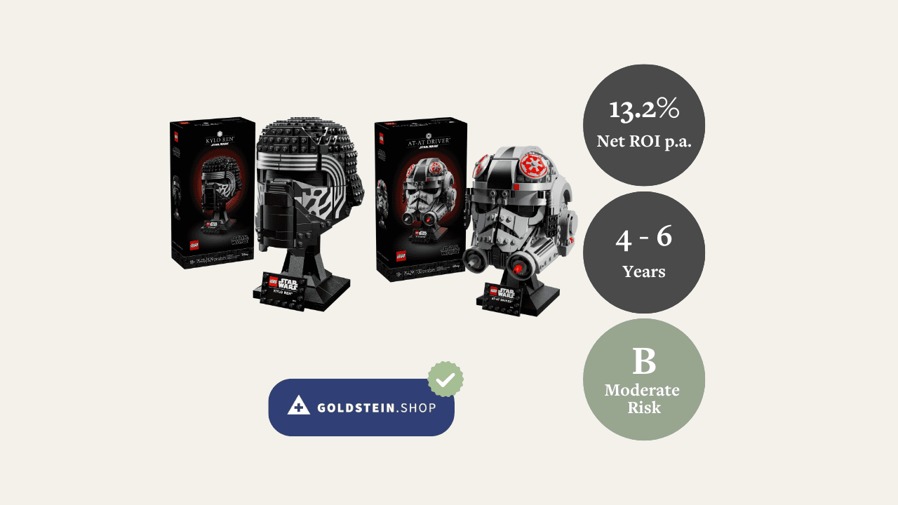 This LEGO Star Wars helmet bundle combines strong collector demand, iconic IP exposure, and disciplined pricing. With a 4–6 year horizon, balanced risk profile, and projected 13.2% annual returns, it represents a compelling opportunity for investors seeking tangible assets with historically proven appreciation and diversified character appeal.