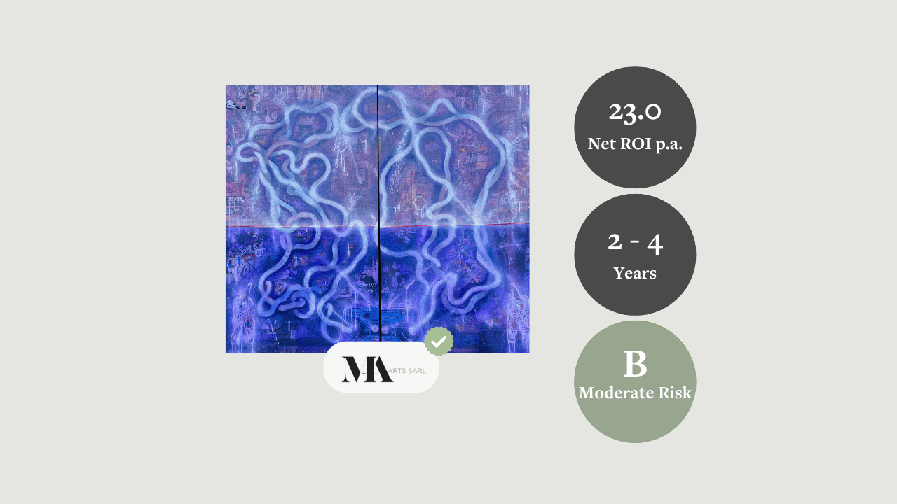 - 23.0% Net ROI p.a. (Balanced): Balanced scenario assumes a 55% probability of achieving the CAGR from 02/2022â02/2026 of 36.6% based on the gallery prices provided by the expert.