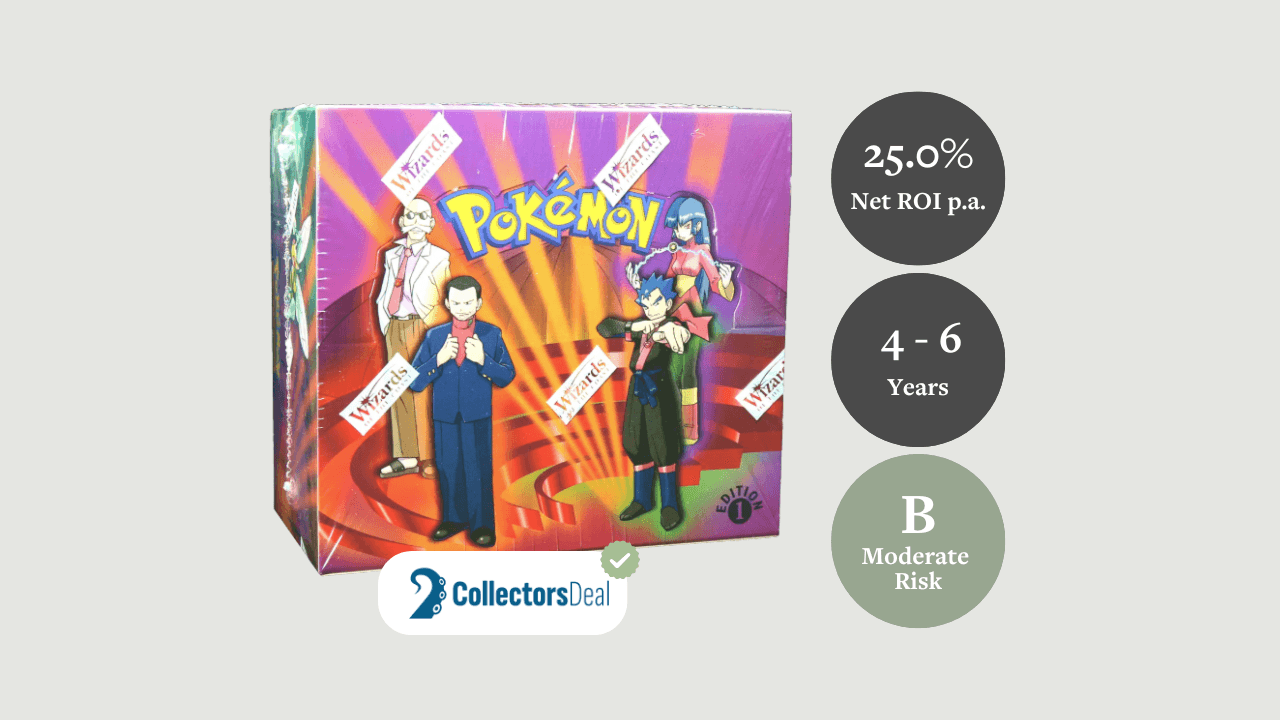 With a strong risk-adjusted return profile, fair entry price, and growing scarcity, the First Edition Gym Challenge Booster Box offers both emotional appeal and investment potential. Backed by historical performance and collector demand, it stands out as a well-rounded, medium-term opportunity in the alternative asset space.