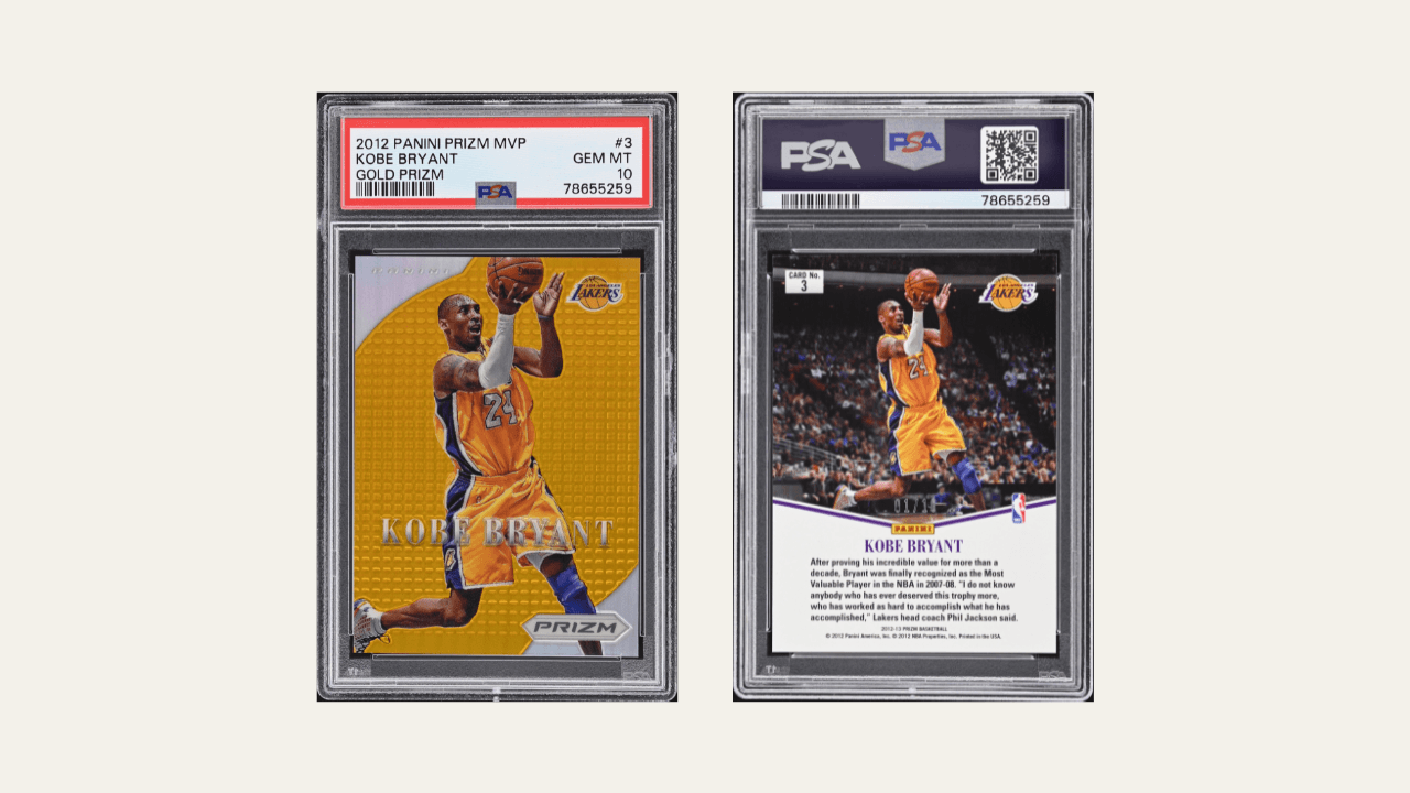 The 2012 Prizm Gold MVP 1/10 is one of the most important Kobe Bryant cards ever produced and a defining piece of Panini’s first Prizm set — the product line that would come to dominate modern sports card collecting. This specific example, serial number 1 of only 10 produced and one of just two ever graded PSA 10, represents a fusion of rarity, condition, and historical significance.