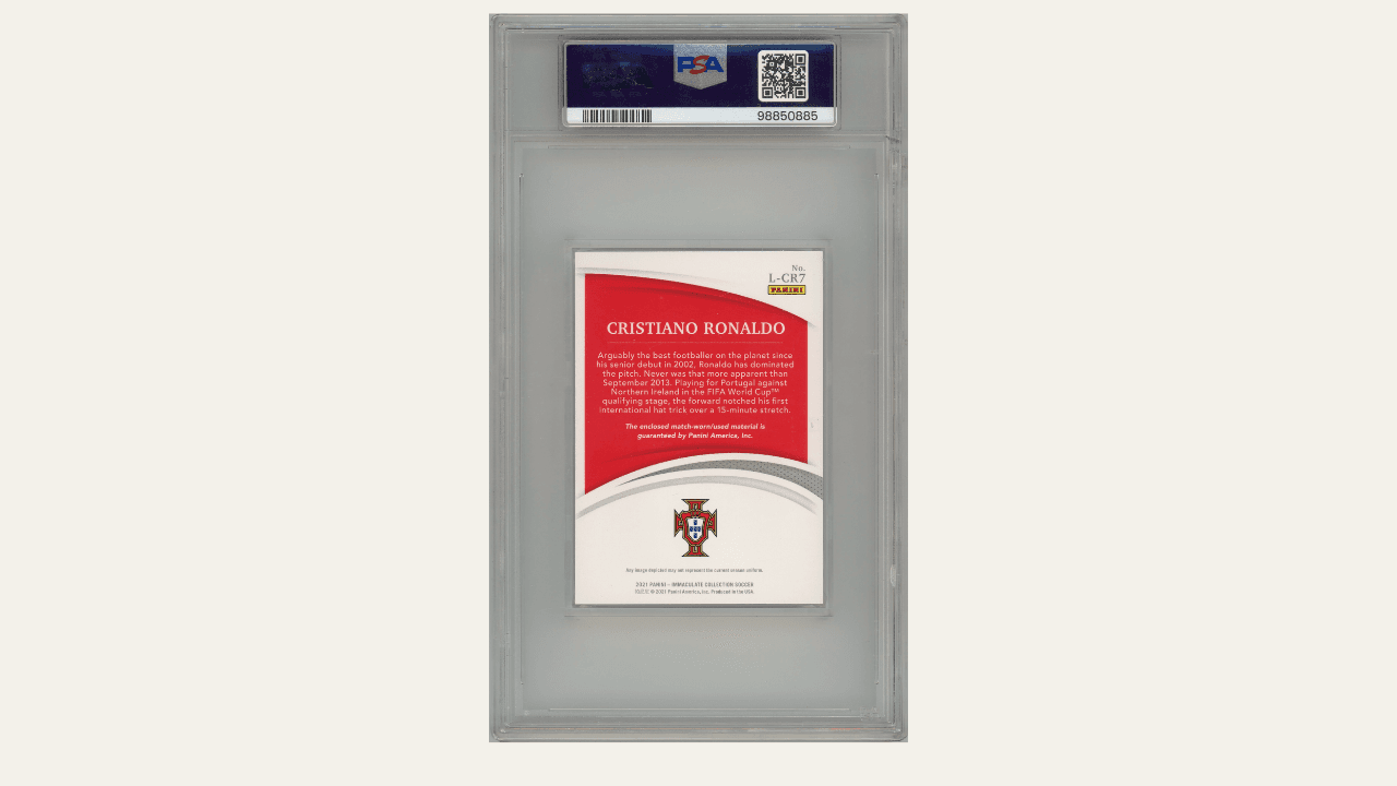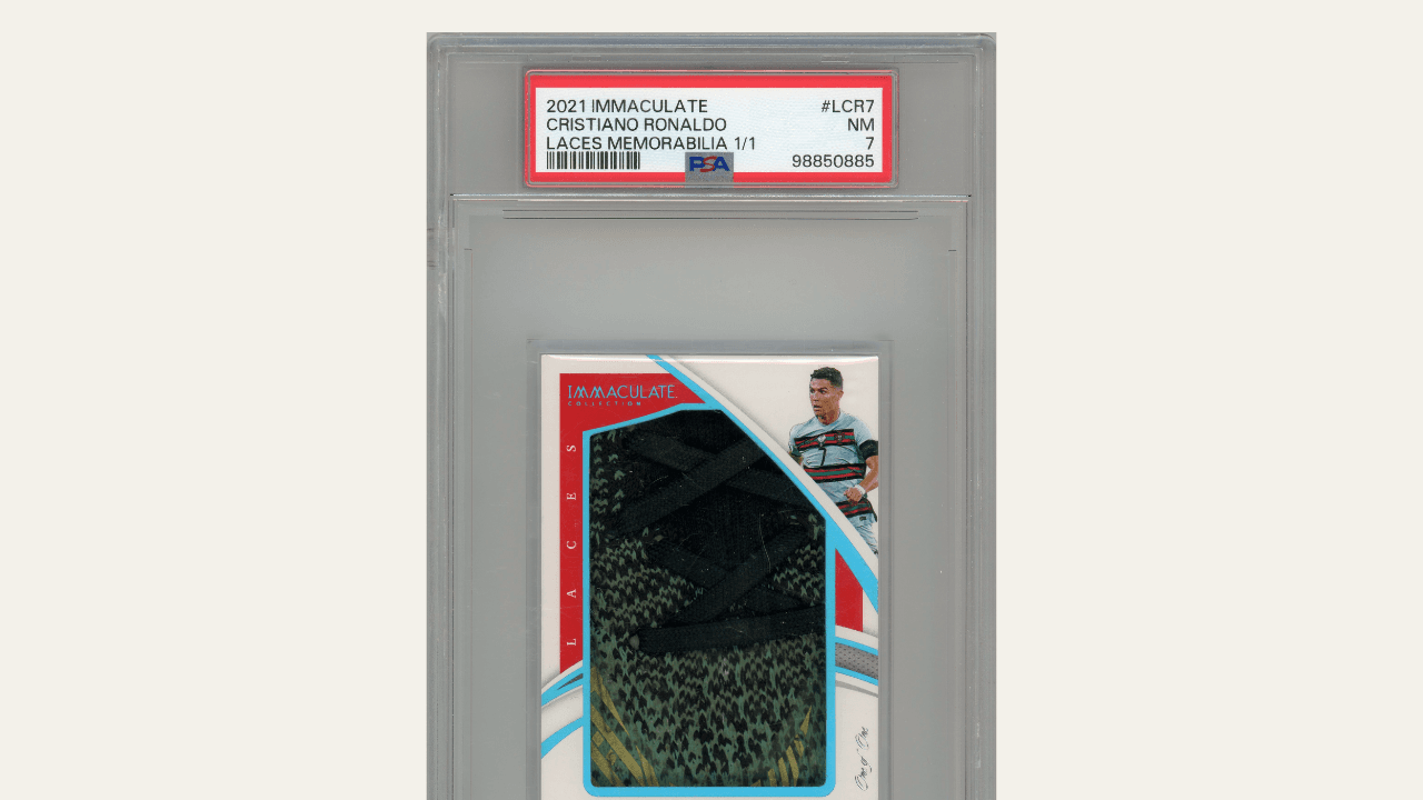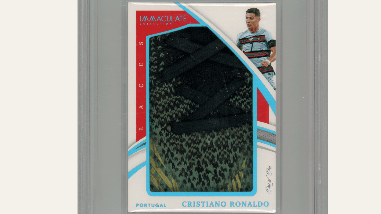 Cristiano Ronaldo’s Immaculate 1-of-1 Laces card combines absolute scarcity, match-worn provenance, and global sporting legacy. As a non-repeatable artifact tied directly to on-pitch greatness, it stands at the intersection of cultural history and elite collecting. Its rarity, symbolism, and worldwide appeal make it a compelling long-term centerpiece for sophisticated investors.