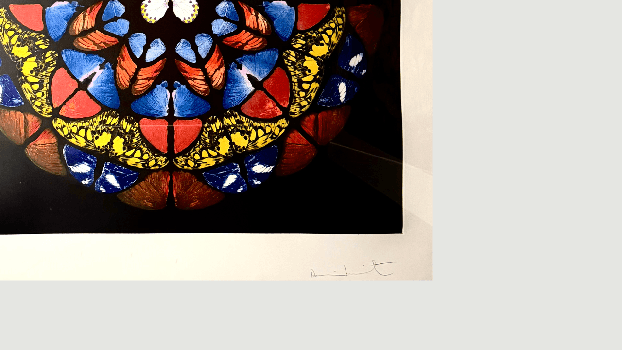 Sanctum Belfry incarne le motif iconique du papillon de Damien Hirst, combinant symétrie architecturale, couleurs vives et symbolisme spirituel dans une édition limitée à 59 exemplaires. Fortement reconnaissable et très prisée des collectionneurs, cette œuvre offre aux investisseurs l'opportunité d'accéder à un artiste contemporain de premier plan, mondialement reconnu, dont la profondeur du marché et la pertinence culturelle durable sont avérées.