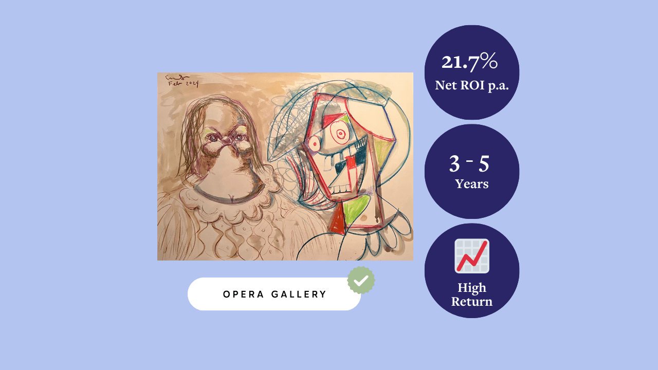 Nous travaillerons en étroite collaboration avec notre expert OPERA GALLERY pour gérer la stratégie de sortie de nos investisseurs, en garantissant le meilleur résultat en fonction des conditions du marché à ce moment-là. En fonction du marché, le tableau sera soit vendu à un collectionneur privé, soit mis aux enchères. Une vente aux enchères sera envisagée si le prix est correct et s'il existe une forte demande pour les œuvres de l'artiste. Nous choisissons avec soin l'option qui offre le meilleur rendement à nos investisseurs.