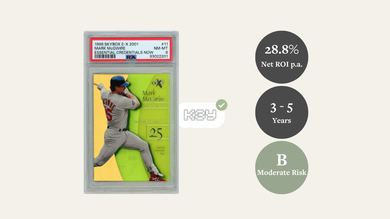 - 28,8 % de retour sur investissement net par an (équilibré) : basé sur une probabilité de 80 % d'atteindre un TCAC de 39,8 % entre 2020 et 2026, selon l'indice McGwire CardLadder.