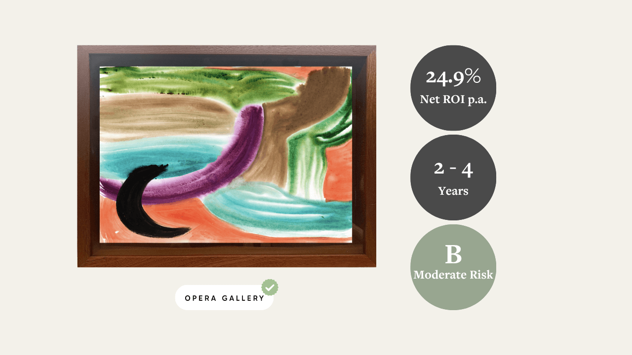 - ROI netto del 27.2% annuo (Ottimistico): Riflette uno scenario di rialzo più forte supportato dalla crescente storia espositiva dell'artista, dalla scarsità di opere disponibili sul mercato e dal crescente interesse dei collezionisti per le opere su carta mentre i prezzi del mercato primario aumentano.