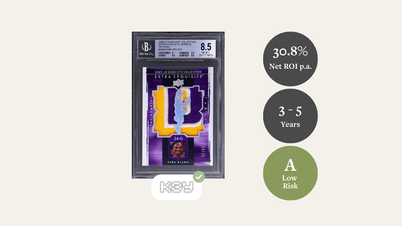 Essendo l’ultima carta patch Exquisite di Kobe Bryant, questo asset combina un forte valore emotivo con una rarità di livello investimento, ulteriormente supportata da 24 vendite comparabili e da solide performance storiche di asset simili.